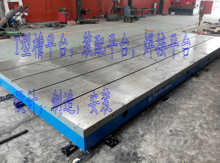 我公司為保定客戶生產(chǎn)的T型槽焊接平臺(tái),2件2500*4000mm的T型槽平臺(tái),拼接成2500*8000mm的焊接裝配平臺(tái).表面帶有刻度線,間距200*200mm。應(yīng)客戶要求在平臺(tái)周邊間距250mm均布M20的螺栓孔40個(gè)。