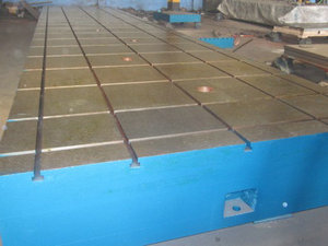 重型鑄鐵平臺按GB/4986-85的標(biāo)準(zhǔn)制造,產(chǎn)品制成筋板式和箱體式,工作有長方形,材料HT200,工作面采用刮研工藝,工作面上可加V型、T型、U型槽和圓孔、長孔等。平板是用于工件檢測或劃線的平面基準(zhǔn)器具。平板安裝應(yīng)調(diào)至水平、負(fù)荷均分布于各支點上,環(huán)境溫度(20±5℃)使用時應(yīng)避免振動。